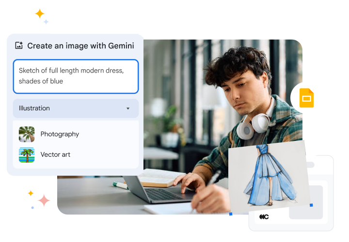 Gemini AI helps you design, organize, and enhance your slides instantly. Generate visuals, improve content, and create professional presentations in minutes, saving time while boosting impact